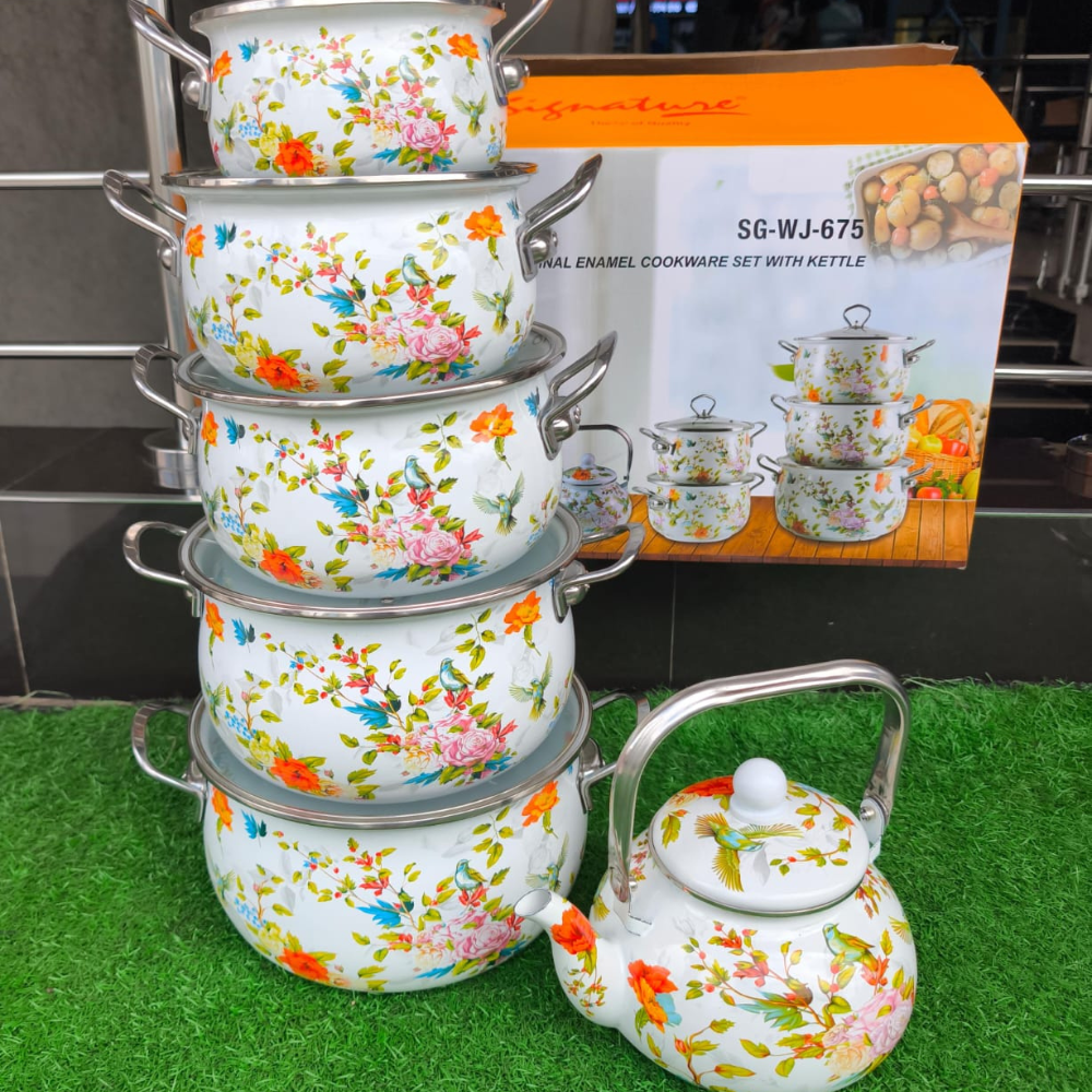 ✅ Comes with a Kettle ✅Has a white base and a floral design